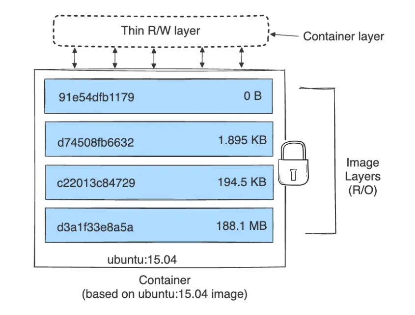 - 컨테이너 레이어 (Read/Write): 이미지를 기반으로 컨테이너를 실행하면 그 위에 쓰기 가능한 레이어가 한 층 더 쌓인다.