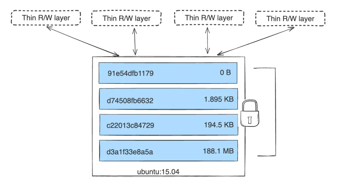 - 용량 절약: 같은 OS 이미지를 사용하는 컨테이너가 10개 있어도, 읽기 전용 레이어는 단 하나만 저장하고 공유한다.