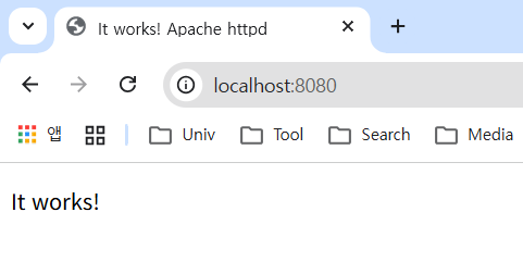 `http:localhost:8080`으로 접속해보면 80포트로 포워딩돼서 test2 컨테이너에 잘 연결되는 것을 확인할 수 있다.
